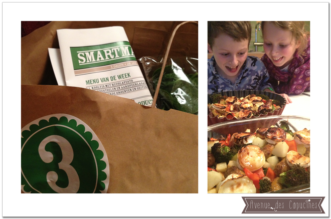 Et oui ! Smartmat est une société anversoise ! Les recettes et leur communication s’effectuent en Néerlandais uniquement. Mais rassurez-vous : le vocabulaire est très facile. Et si vous ignorez ce qu’est une « peterselliewortel« , Google image est votre ami ! - (Edit) Et c’est cher tout ça ?On me souffle dans l’oreillette que j’oublie de parler du prix ! Évidemment, tout dépend de la formule qu’on prend. Nous, on paye 75 euros par semaine pour 4 repas. Mais nous avons en fait de quoi nourrir 5 personnes + un repas le lendemain. Le tout, livré à domicile, c’est assez imbattable (et n’allez pas imaginer que j’affame mes enfants). Par contre, les colis pour 2 personnes paraissent proportionnellement un peu plus chers : 65 euros. Cela fait une barrière à l’achat d’autant plus importante que lorsque je n’avais pas d’enfant, l’avantage d’éviter les courses me paraissait moins évident…