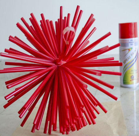 Encore un bricolage tout simple à réaliser avec les plus petits : on achète des chalumeaux, on les lie avec un colson et hop, voici un pompom plastique qui trouvera sa place sur votre sapin extérieur. (Découvrez toutes les étapes ici)
